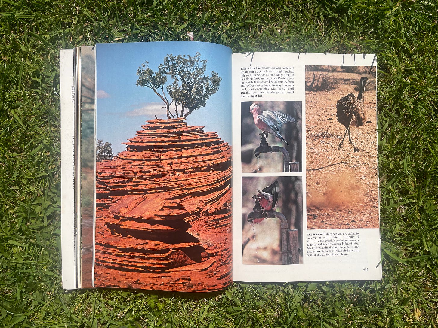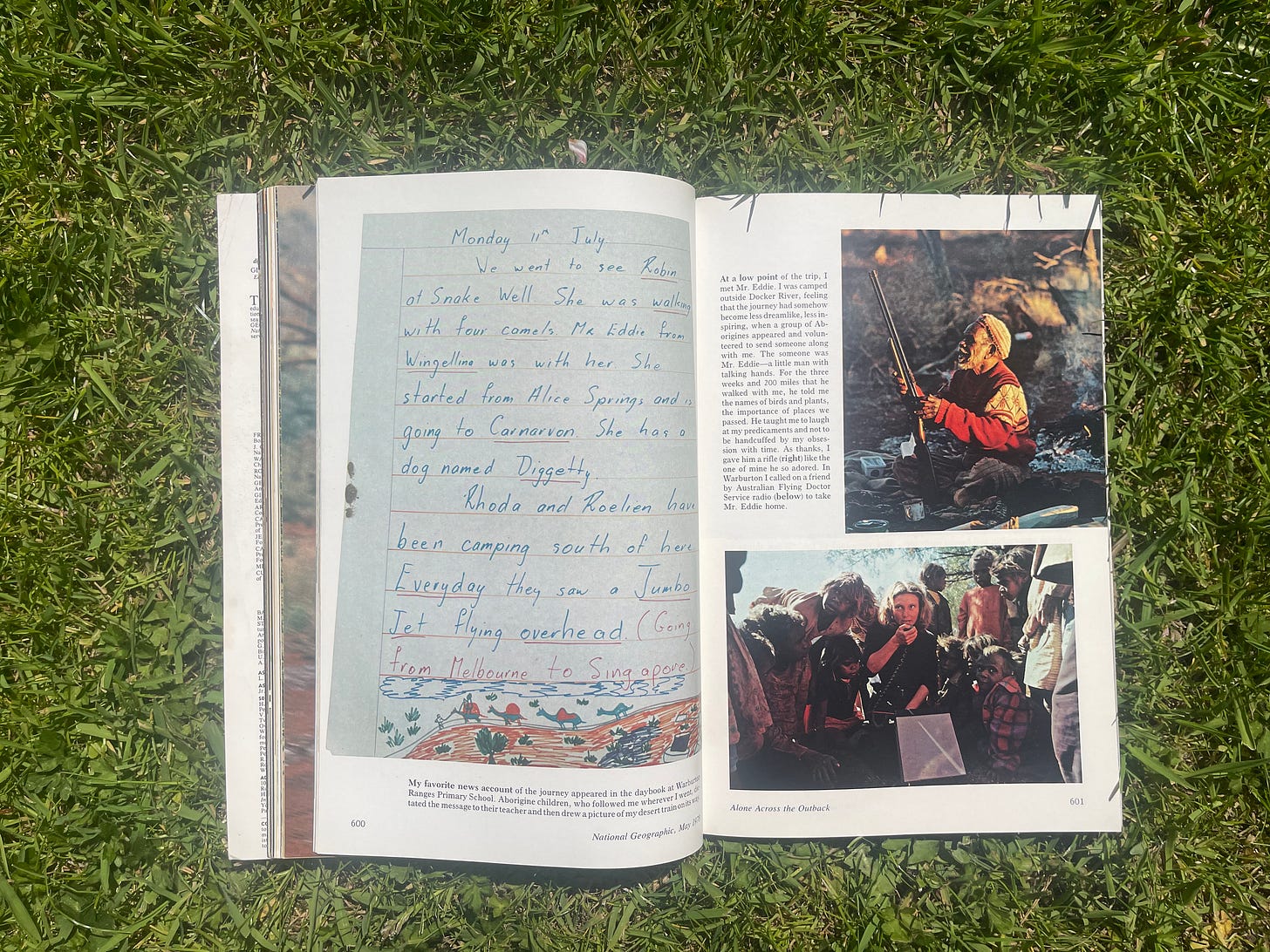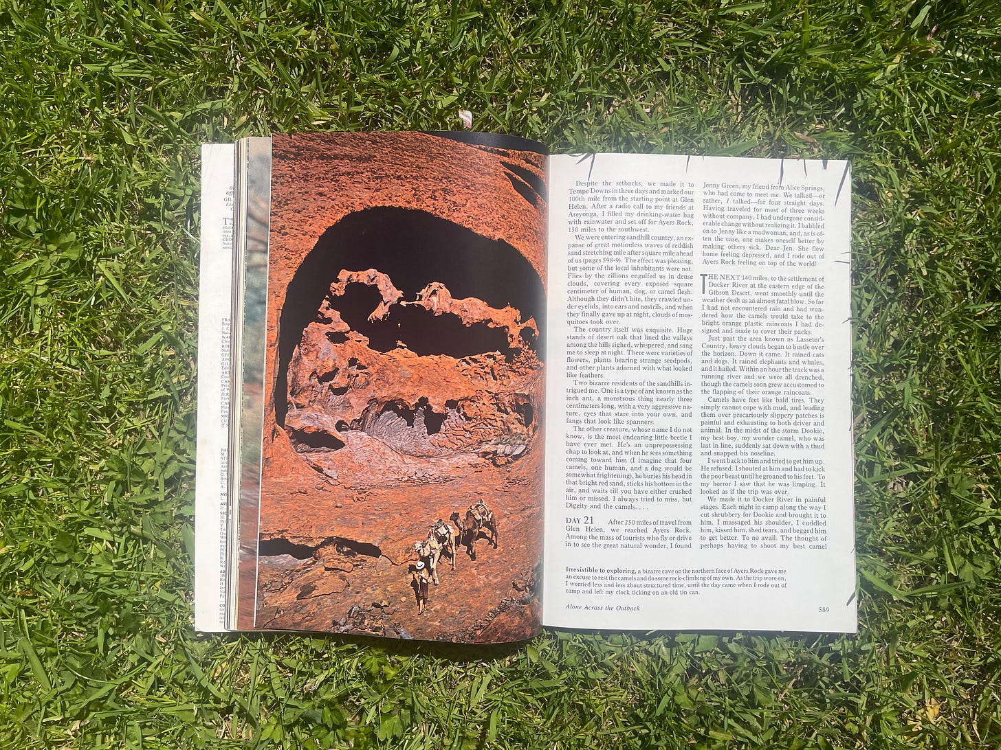 One of the issues I kept is May 1978 – which features the story of Robyn Davidson’s 1,700-mile trek from Alice Springs to the Indian Ocean.